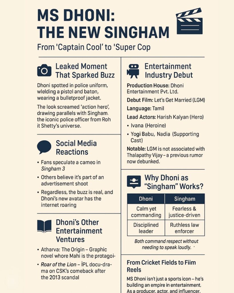 Additionally, Dhoni has a producing company (Dhoni Entertainment PVT LTD). The fans are anticipating seeing Dhoni act in a movie after seeing him in a police uniform.